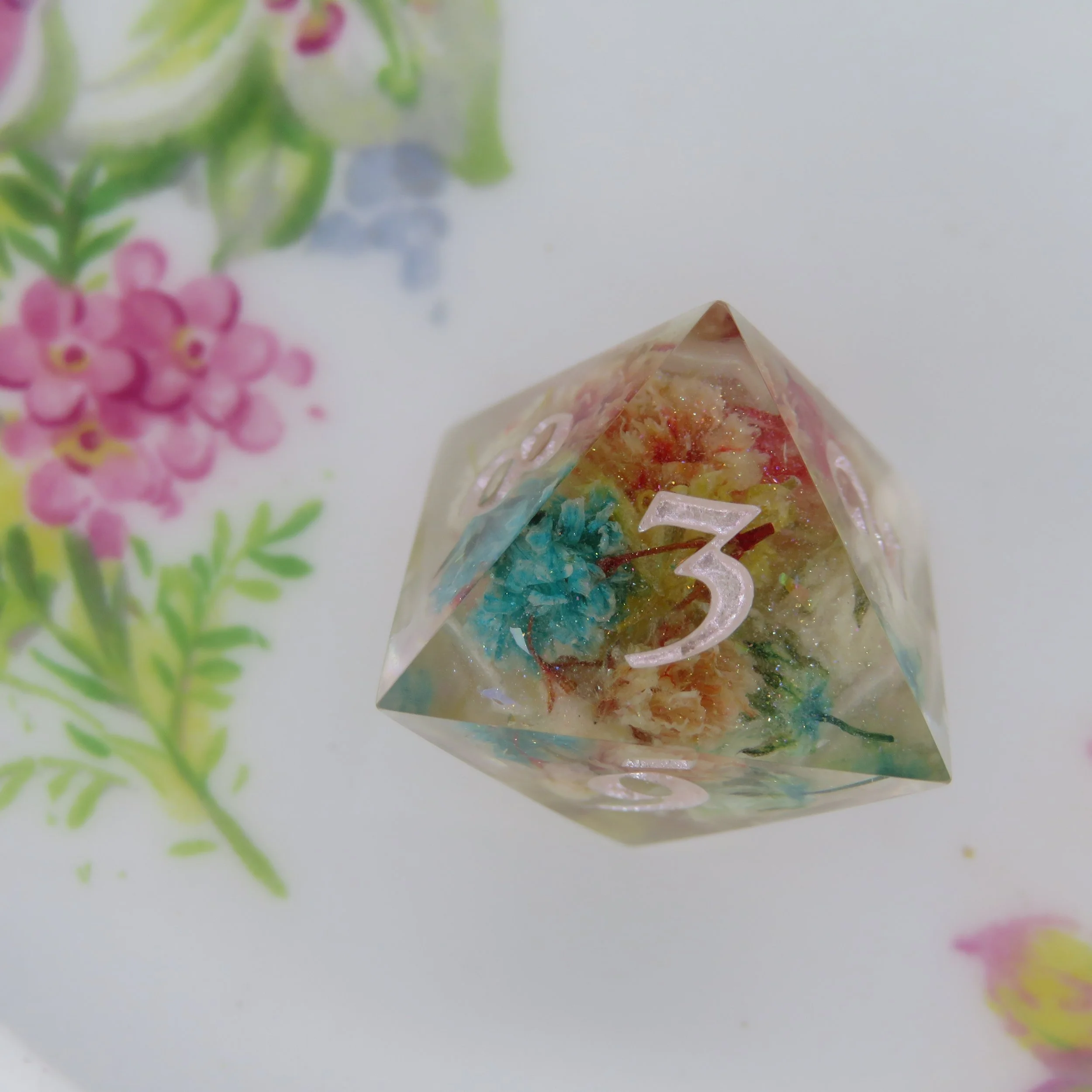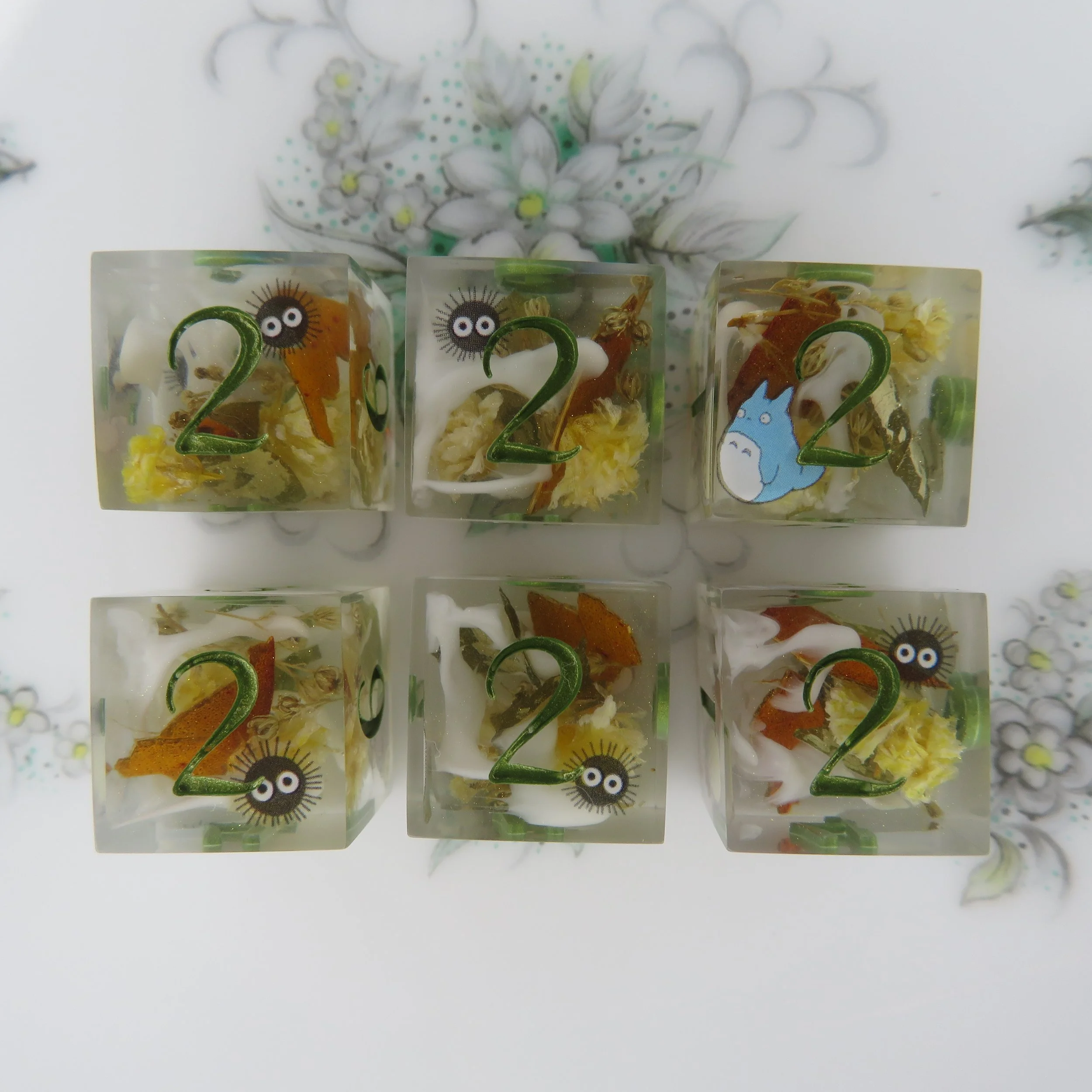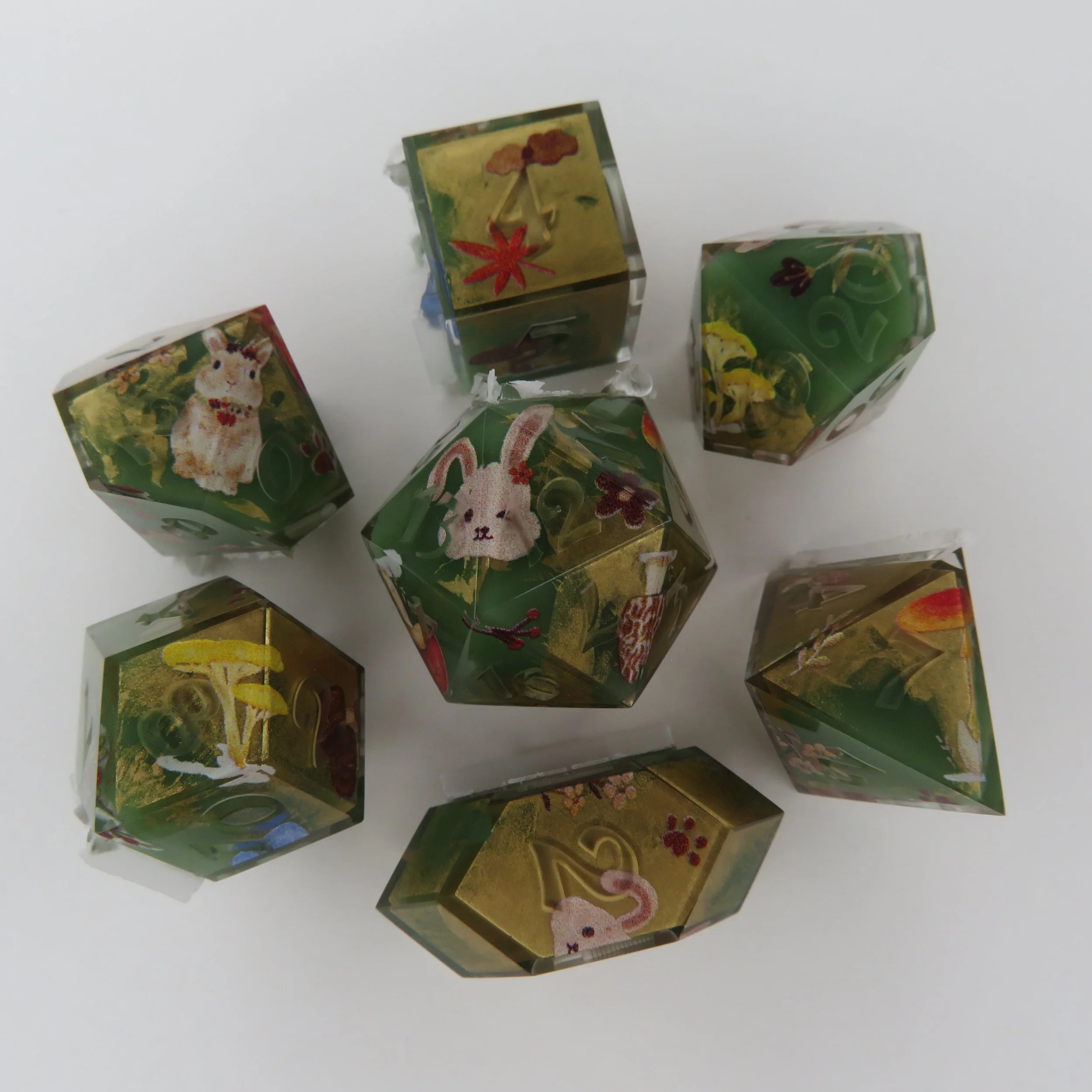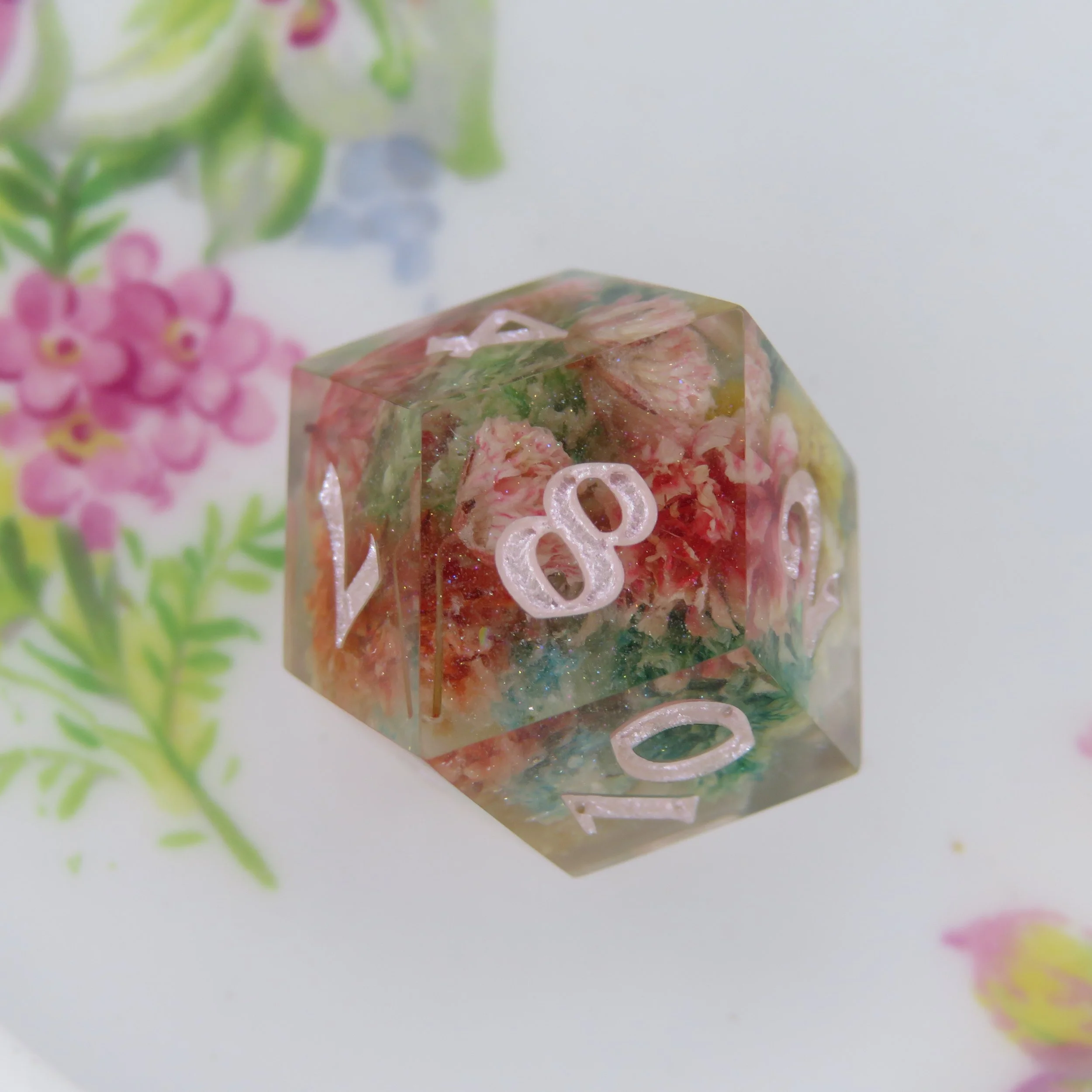 This type of dice set can also have pigments/glitters but any additional florals, stickers, or terrarium frames an an additional $10-20.