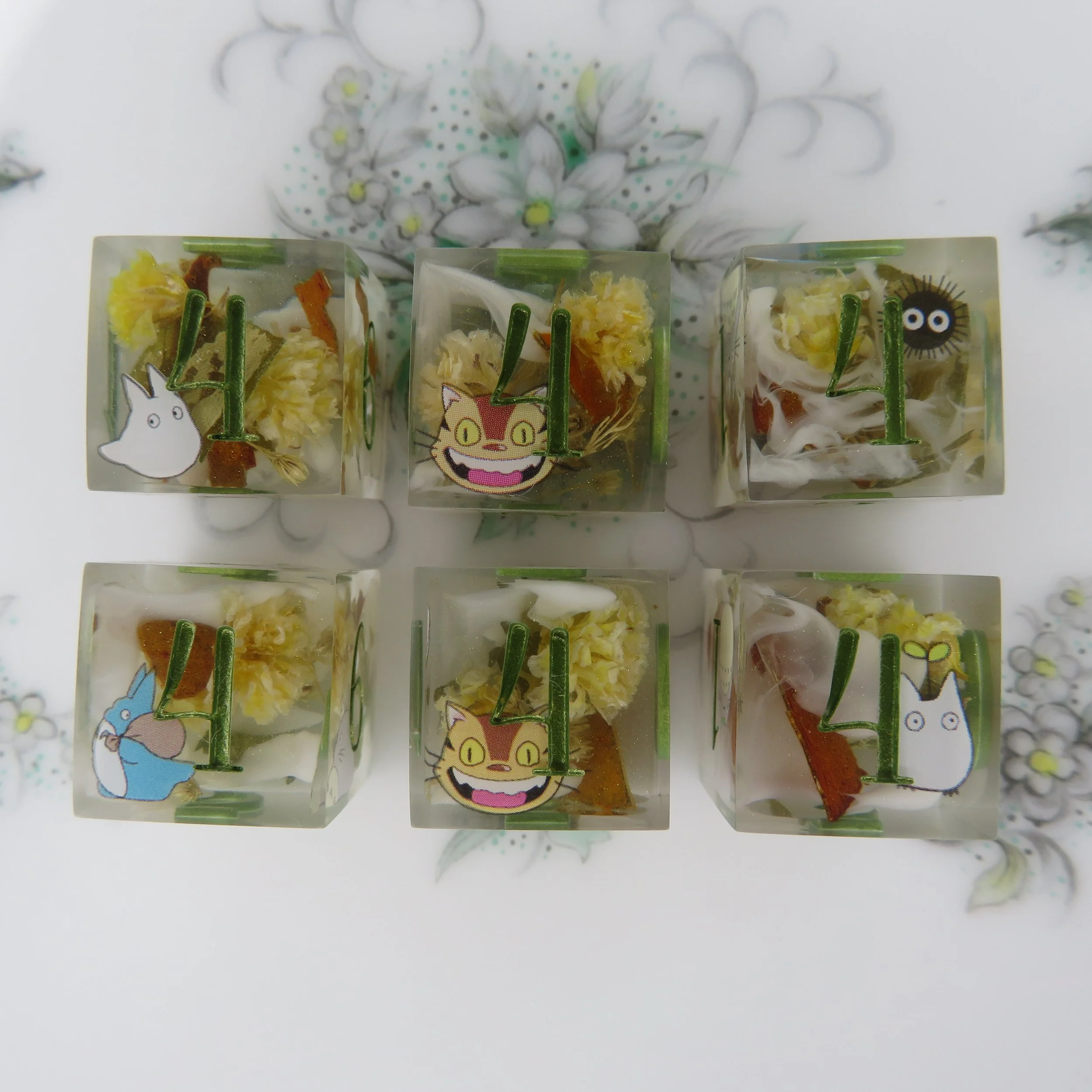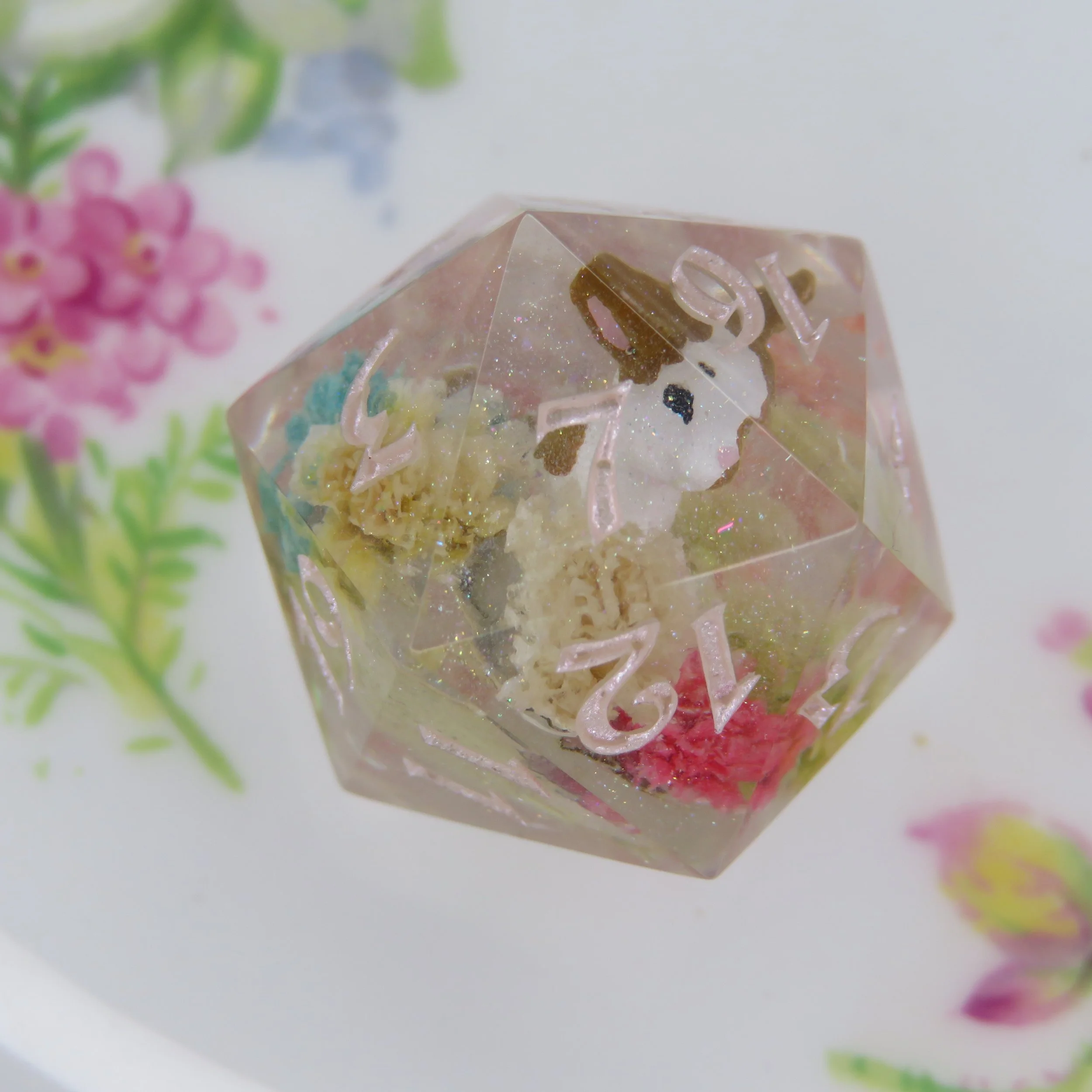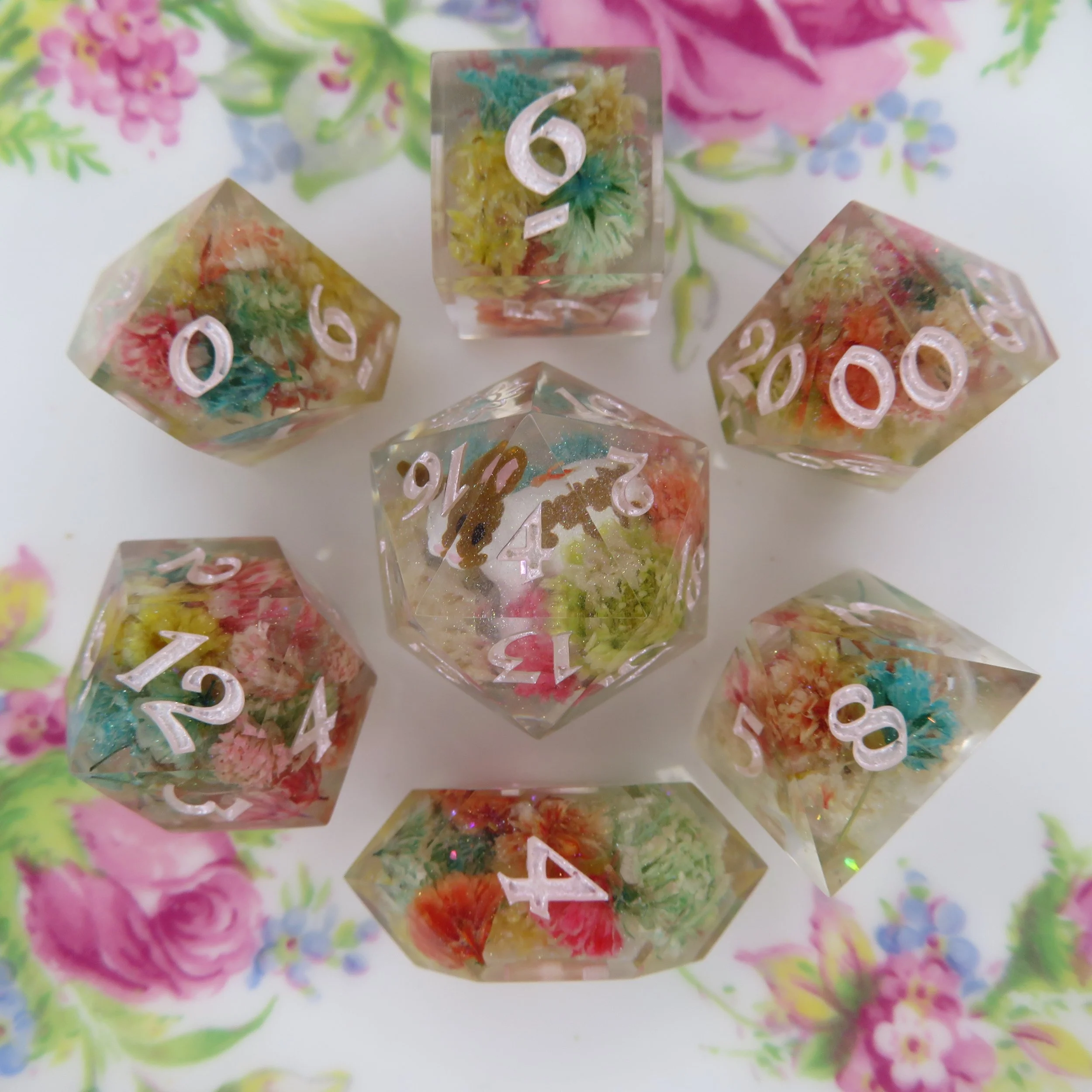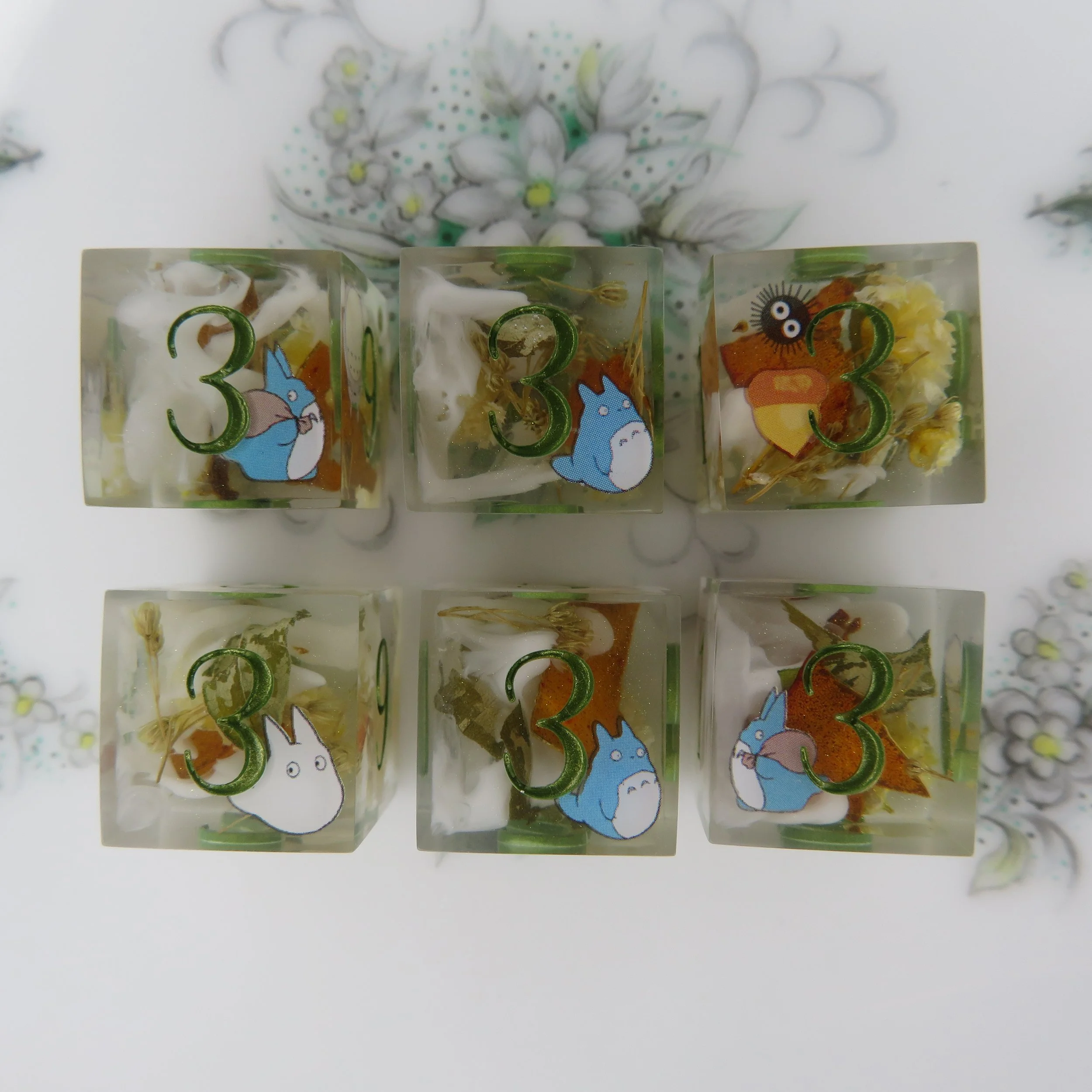 This type of dice set can also have pigments/glitters but any additional florals, stickers, or terrarium frames an an additional $10-20.