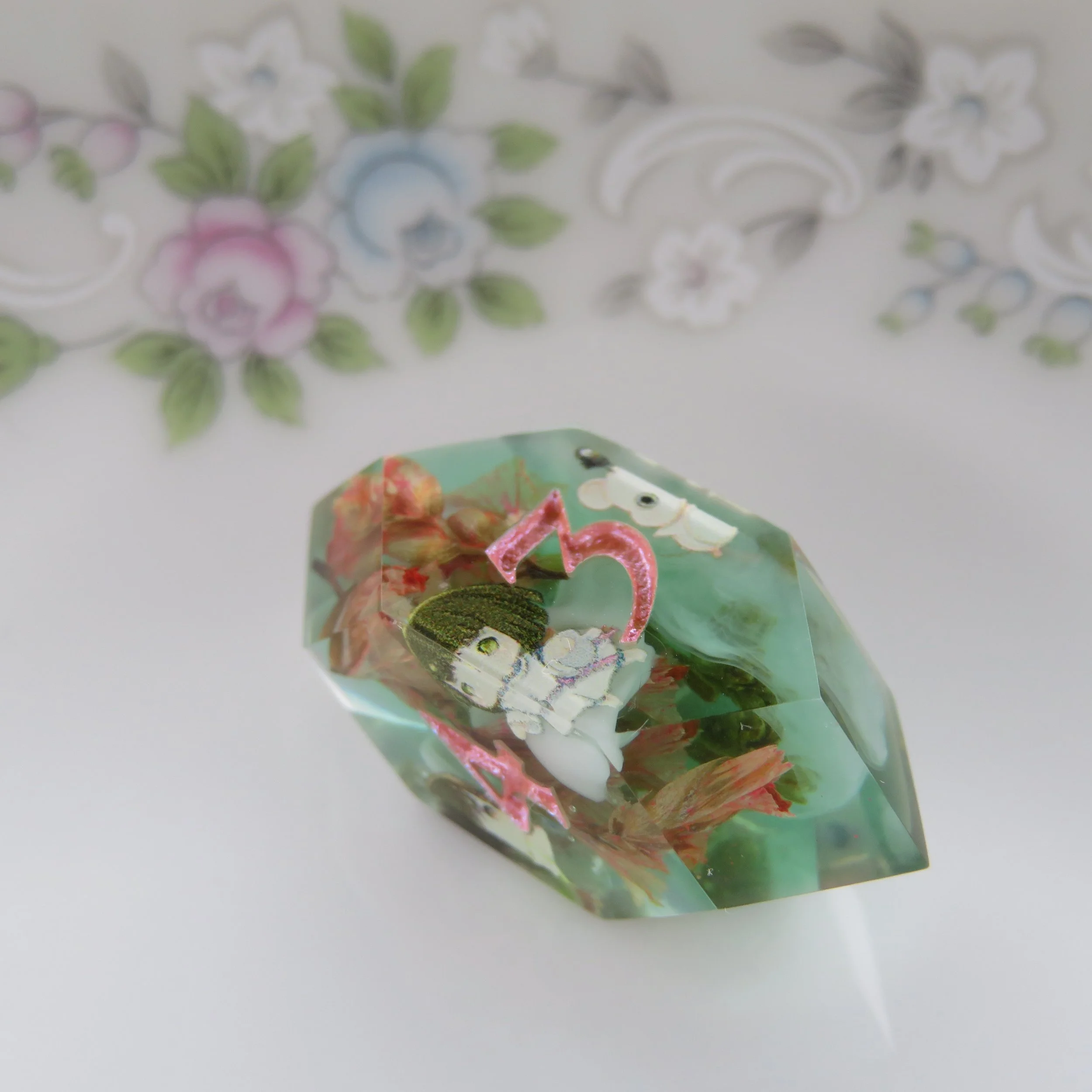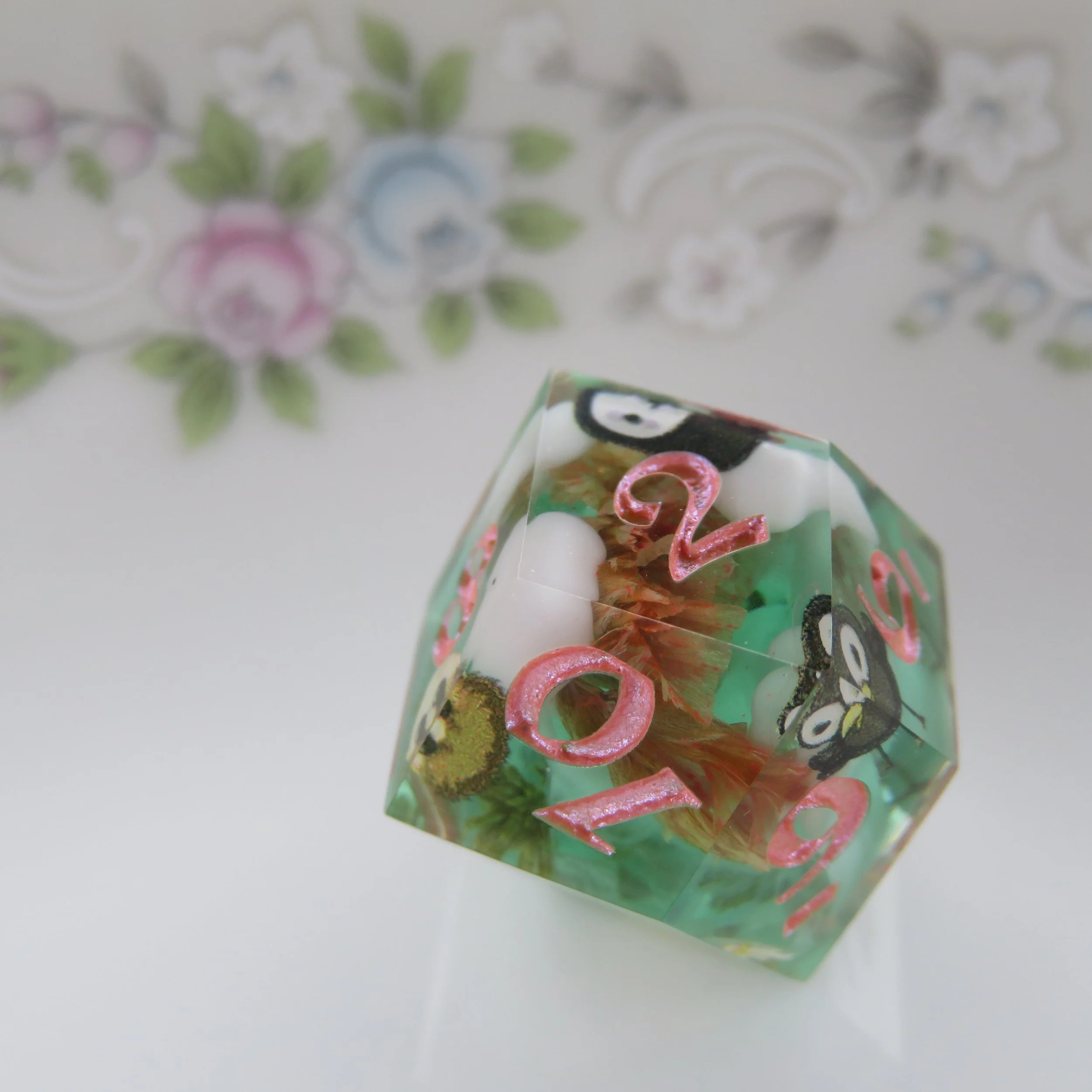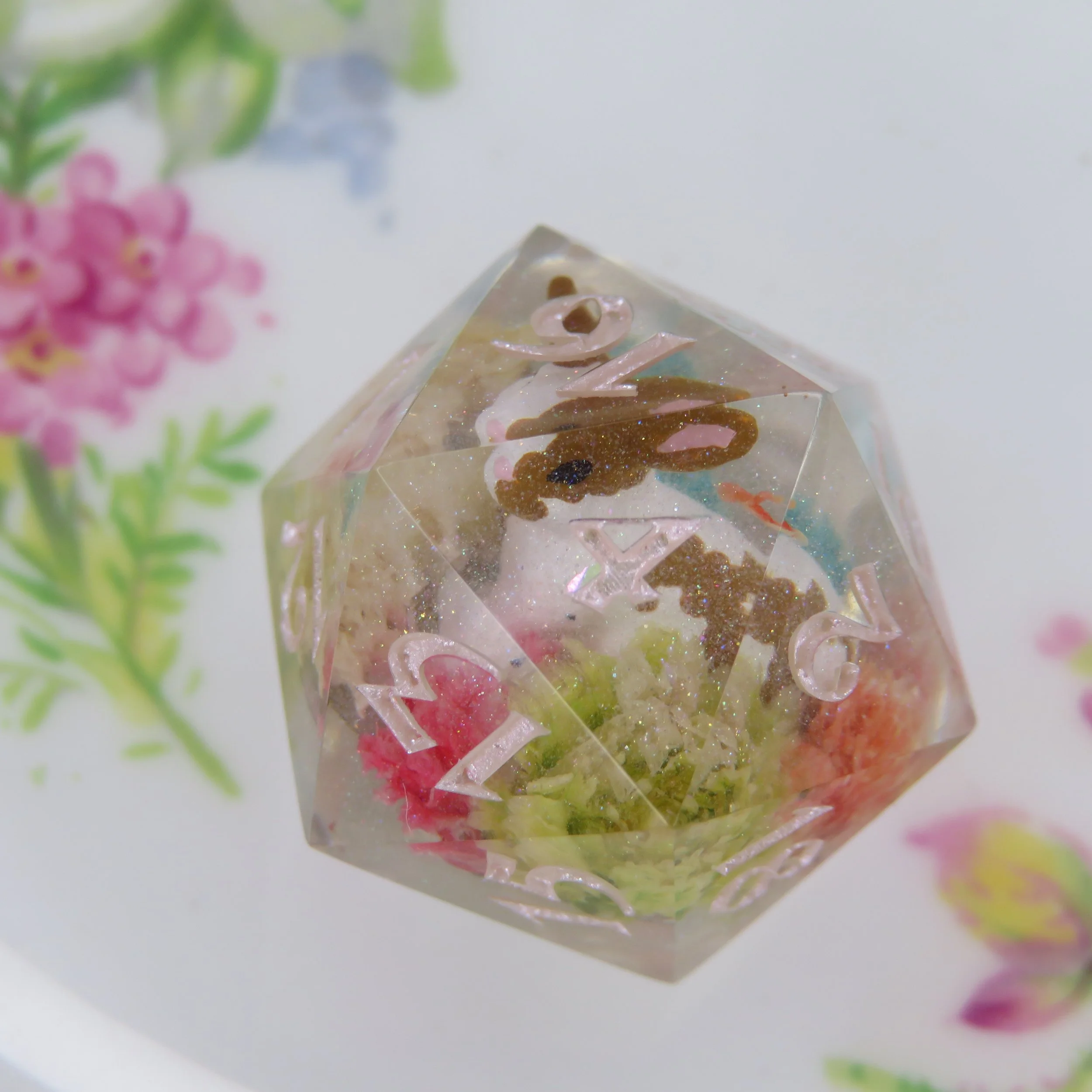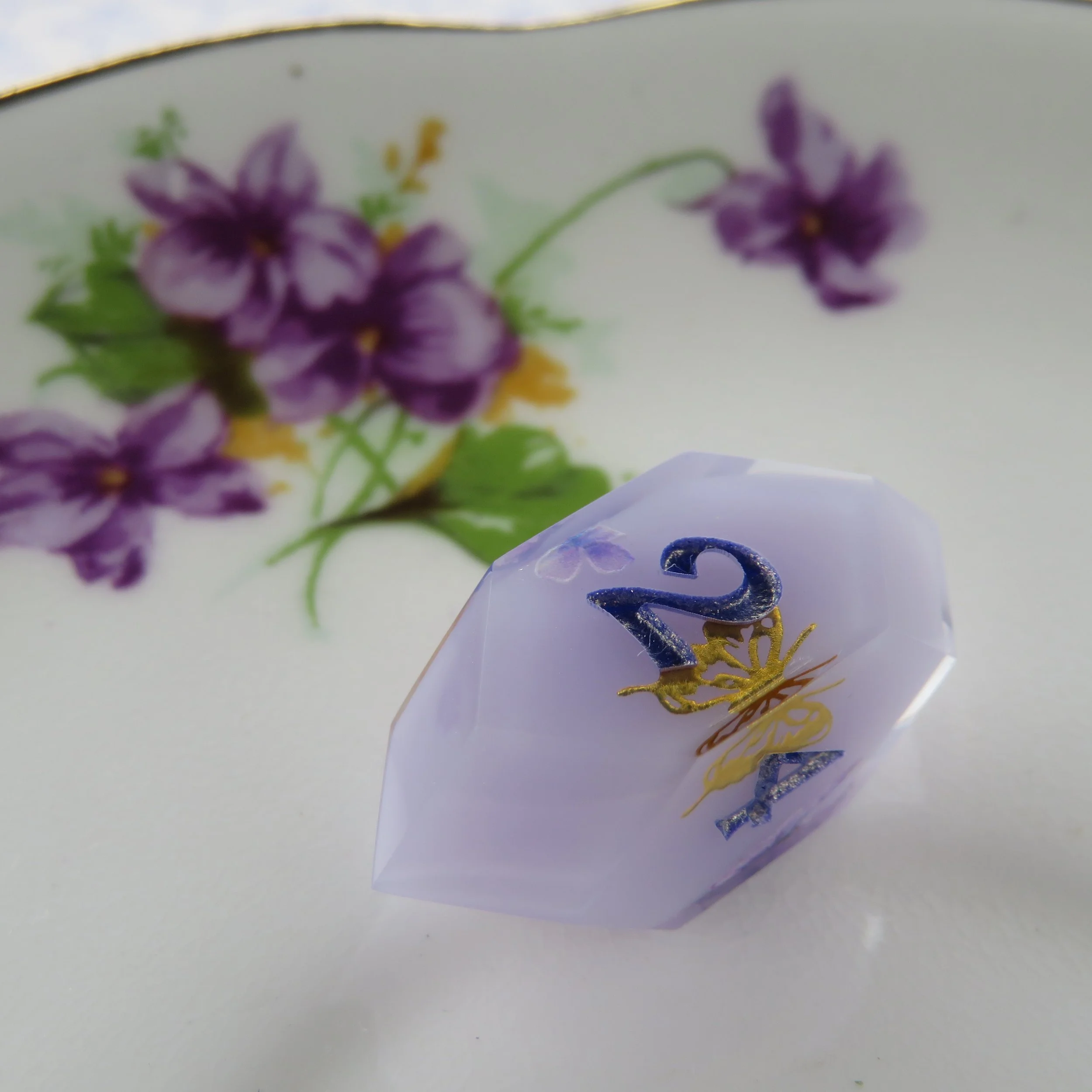 Please tell me your name, who the set is for and what type of dice set and look you are interested in or what you know you’d like included. For example: a Sticker Dice Set with bees, and pink flowers. Or a Terrarium Dice Set with real bees, blue flowers and white frames. The more detail you provide the better. You should also think about what color you’d like your numbers to be, I can do pretty much any color in matte, or sparkle/ shimmer. If you have a specific date you need it ready by, please let me know.