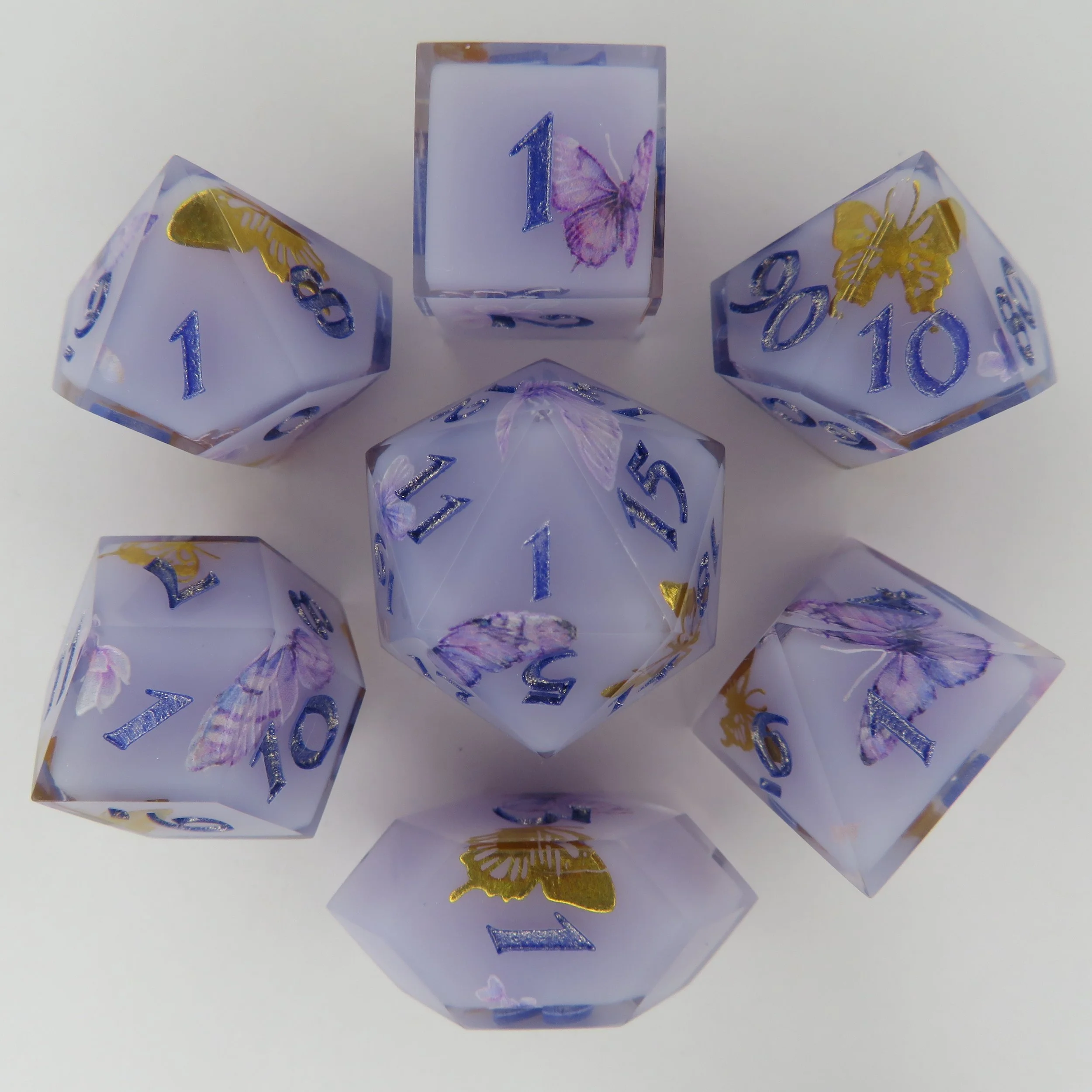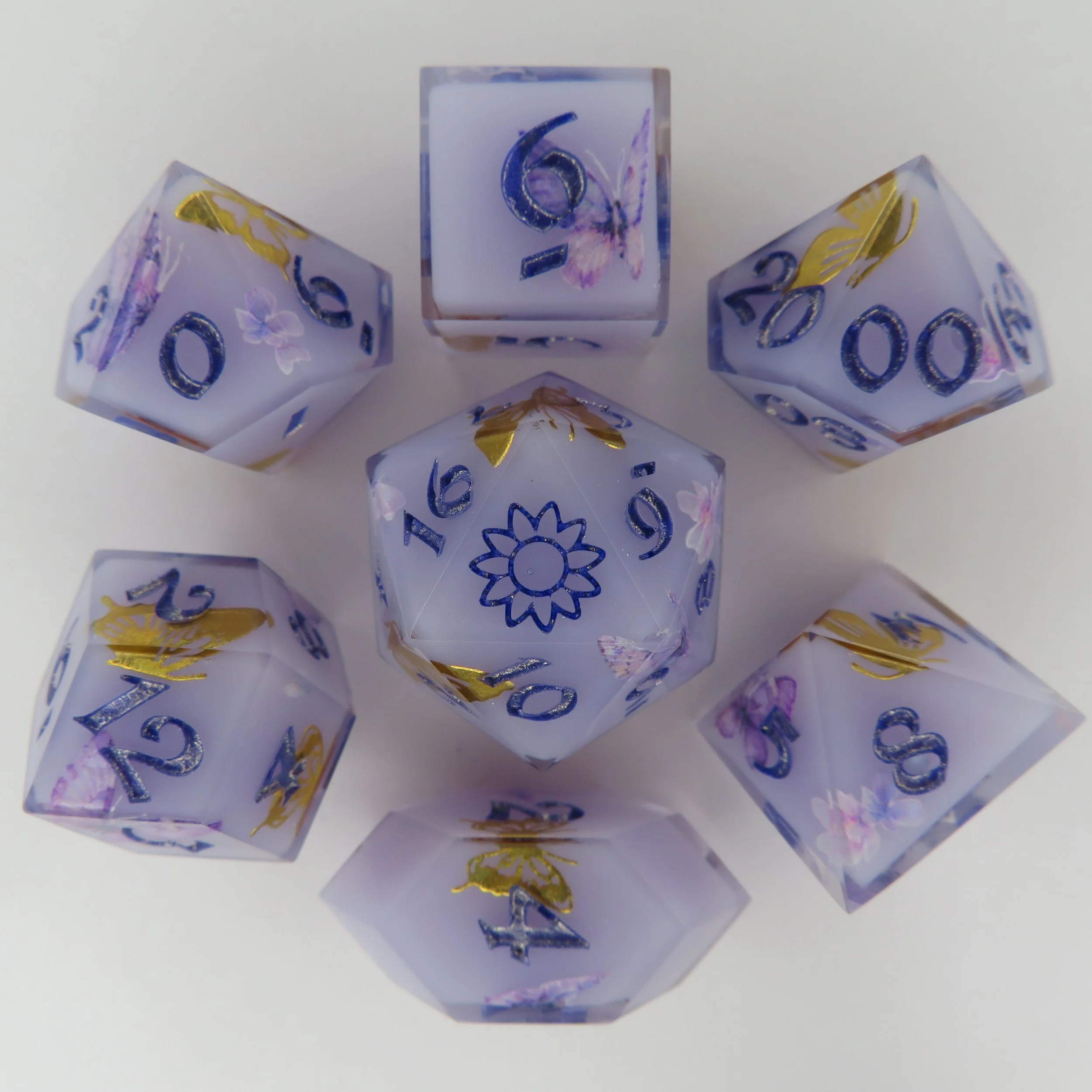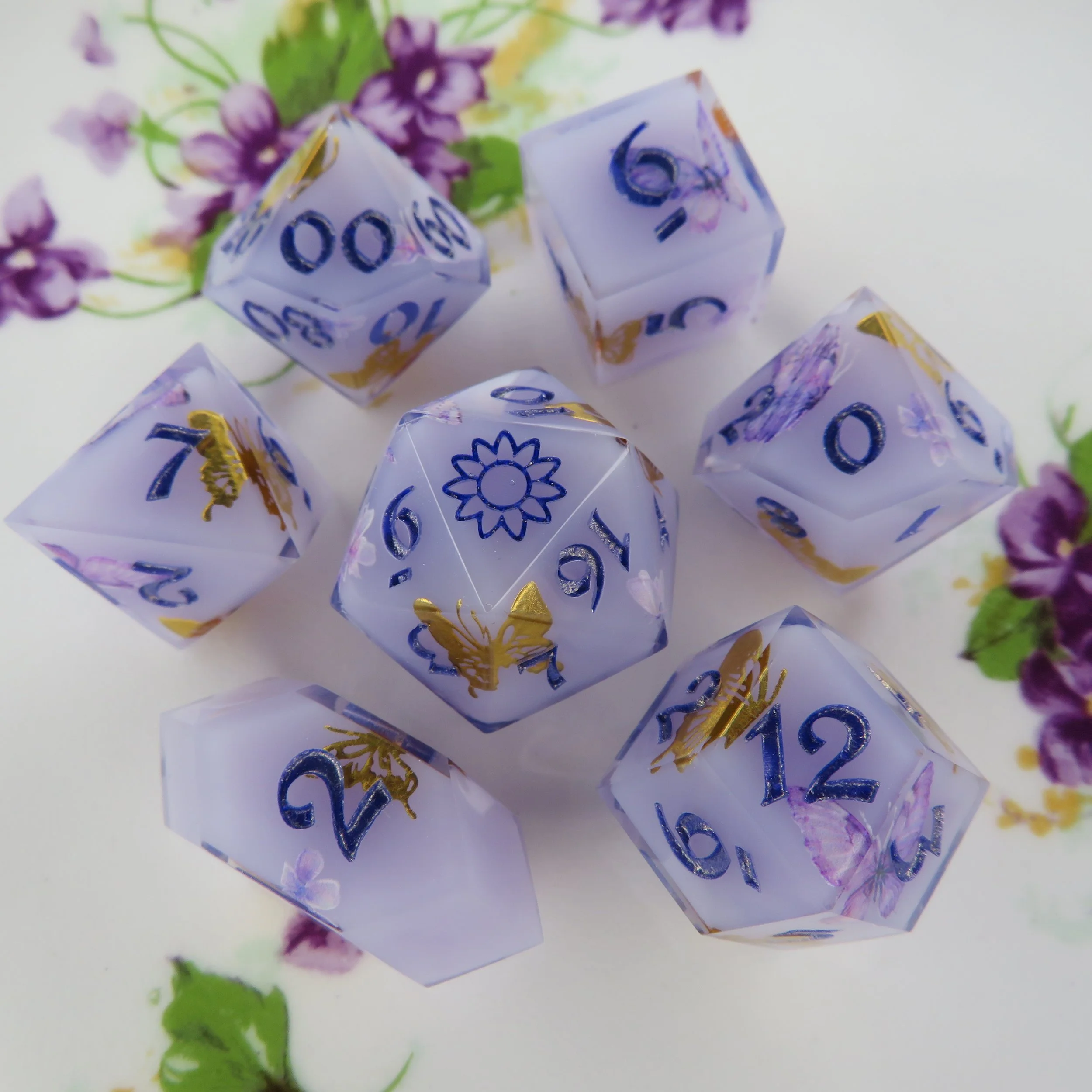 Floral Dice Set w/ natural Inclusions are an additional cost varying based on the labor time and material costs.