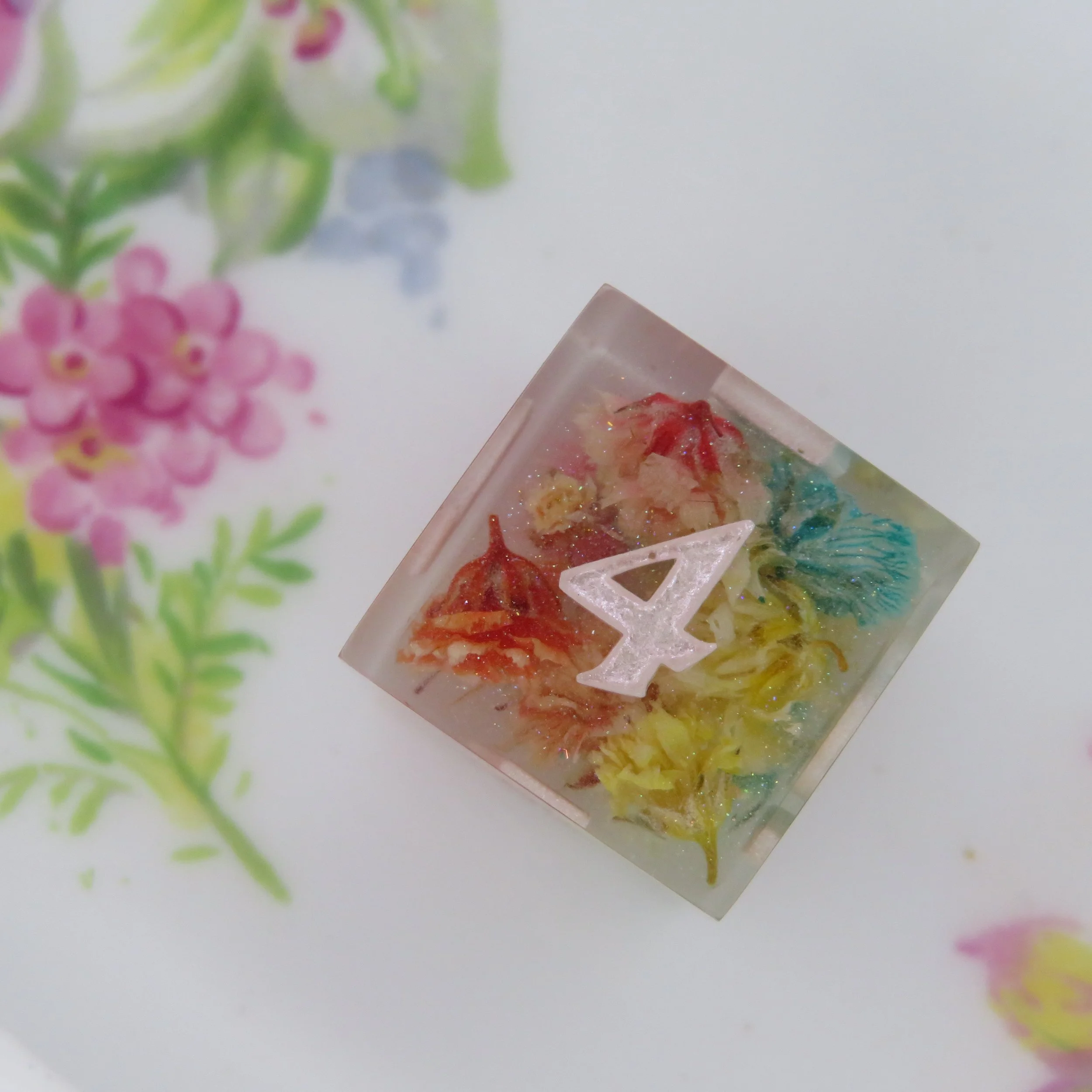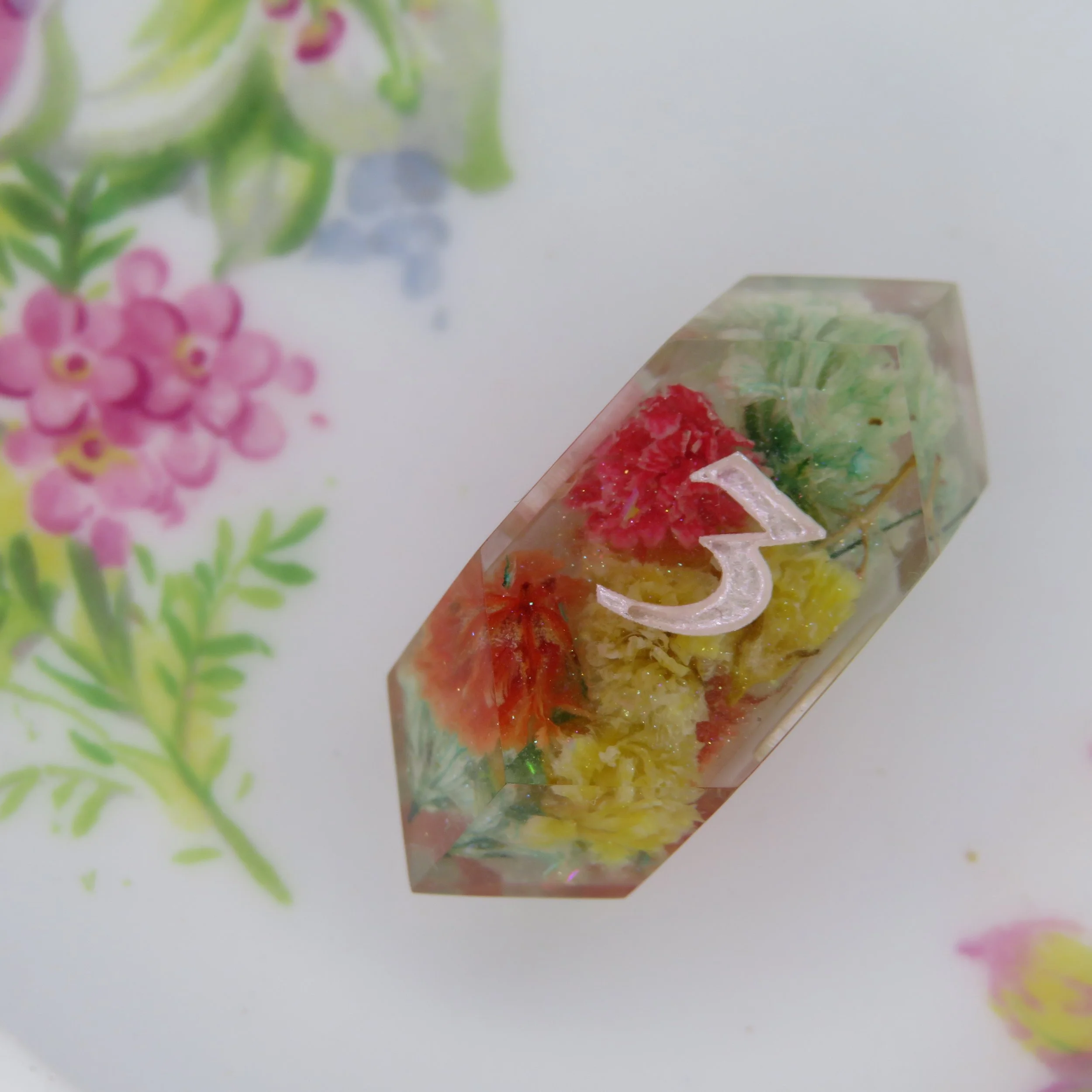 This set includes any flowers and pigments you’d like. There is no limit to how many flowers you’d like, as long as they fit inside the dice. If you would like to see any or all my available flowers, please feel free to ask. I can also use flowers you’d like to ship to me to have placed inside your dice from a wedding, loved one, special memory, memorial, etc.